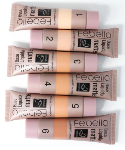 Base Líquida Matte Febella acabamento matte A Base Liquida Matte Febella tem o acabamento natural e com alta cobertura, ótima qualidade. A Base Líquida Matte Febella, desenvolvida para conter a oleosidade da pele e disfarçar imperfeiçoes, proporcionando um acabamento natural com cobertura média e uniforme. MODO DE USAR: Aplique a base no rosto com um pincel próprio ou uma esponja de maneira uniforme. Precauções: Não usar sobre a pele lesionada. Em caso de irritação suspender o uso. Guardar em local seco e arejado, evitar temperaturas acima de 40ºC. Manter fora do alcance de crianças. Uso externo!