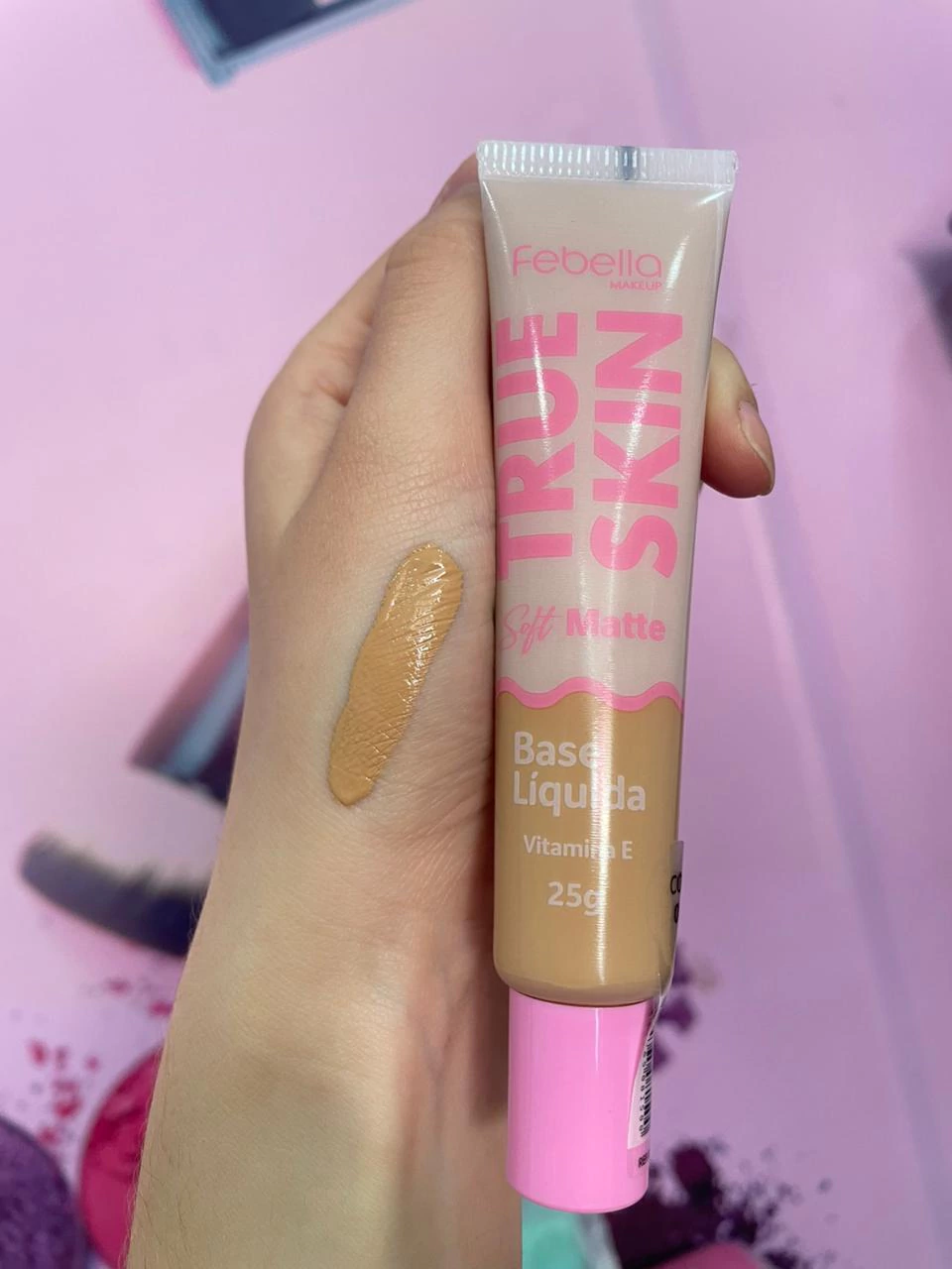 A Base Líquida Soft Matte True Skin da Febella é a escolha perfeita para quem busca uma pele impecável com acabamento natural e duradouro. Com fórmula de alta cobertura, ela disfarça imperfeições e controla a oleosidade, proporcionando um efeito matte suave e confortável.