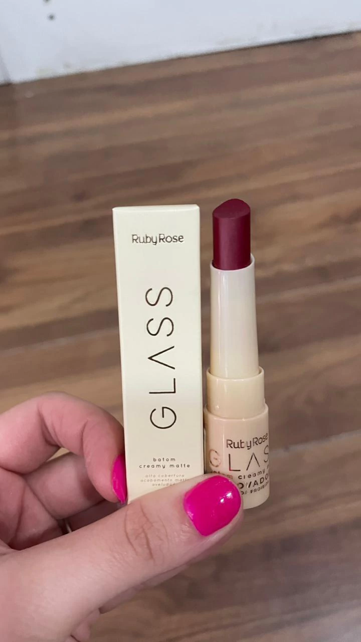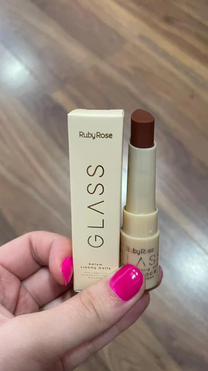 O Batom Creamy Matte Glass Ruby Rose une textura cremosa e acabamento matte em uma fórmula confortável e de alta fixação. Com pigmentação intensa e cobertura uniforme, ele proporciona lábios macios, definidos e com efeito aveludado, sem ressecar.