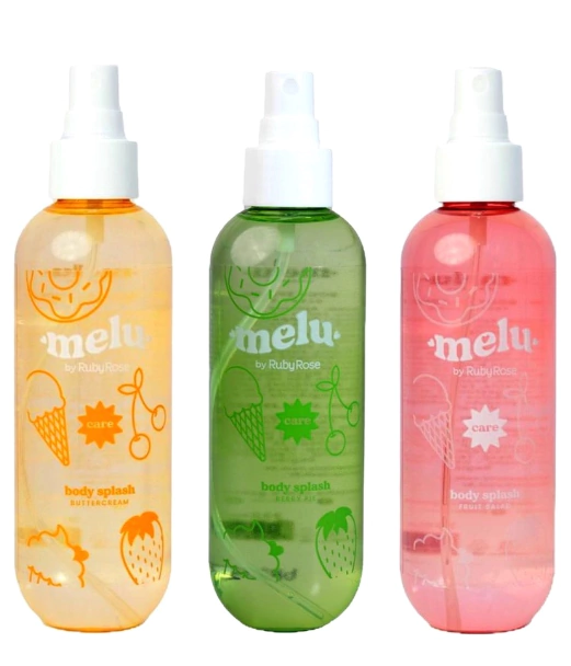 Body Splash Melu 200ml Ideal para manter o corpo perfumado a todo tempo, Body Splash da Melu prolonga os momentos de frescor na sua pele. Com uma fragrância leve e um perfume suave, o spray corporal perfumado também é uma ótima opção para utilizar depois do banho e potencializar o efeito da loção hidratante.