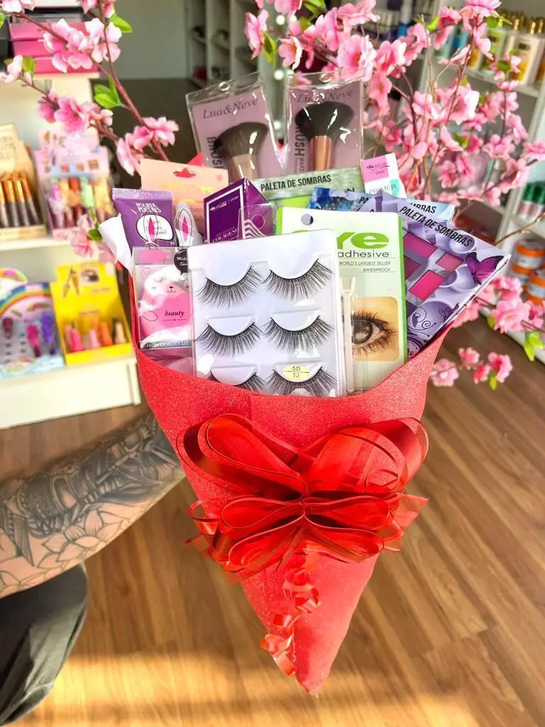 A loja tudo a 10 Make Up vem com essa BOMBA!!!! Você agora vai adquirir esse lindo buquê, com 10 itens em maquiagem e acessórios realmente e uma explosão de maquiagem para você usar ou presentear a pessoa amada.