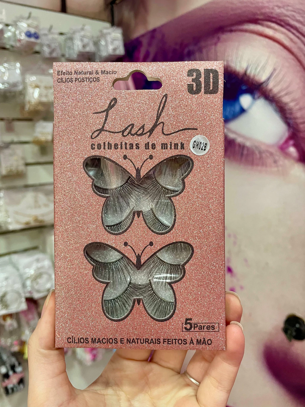 Cartela com 5 pares de cílios 3D estilo mink sintético, projetados para realçar o olhar com elegância, volume e conforto.