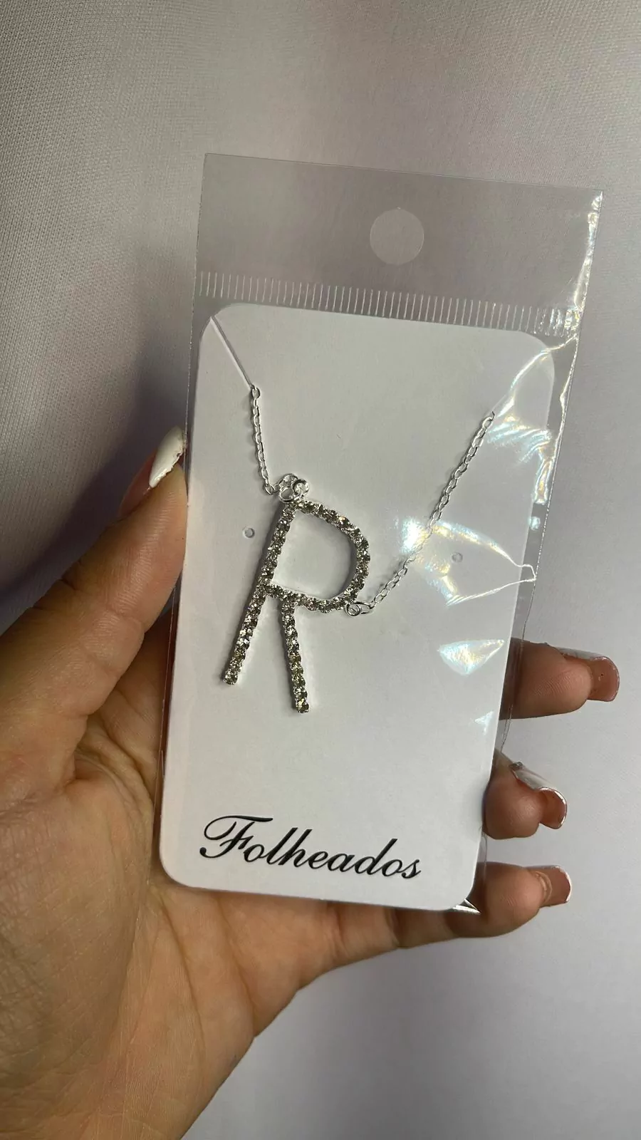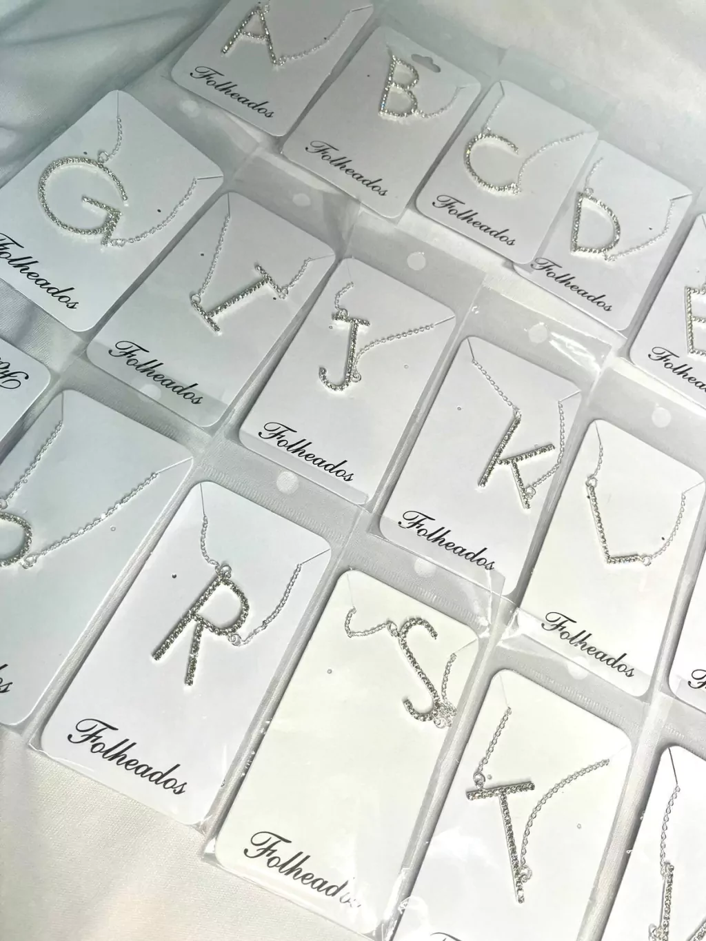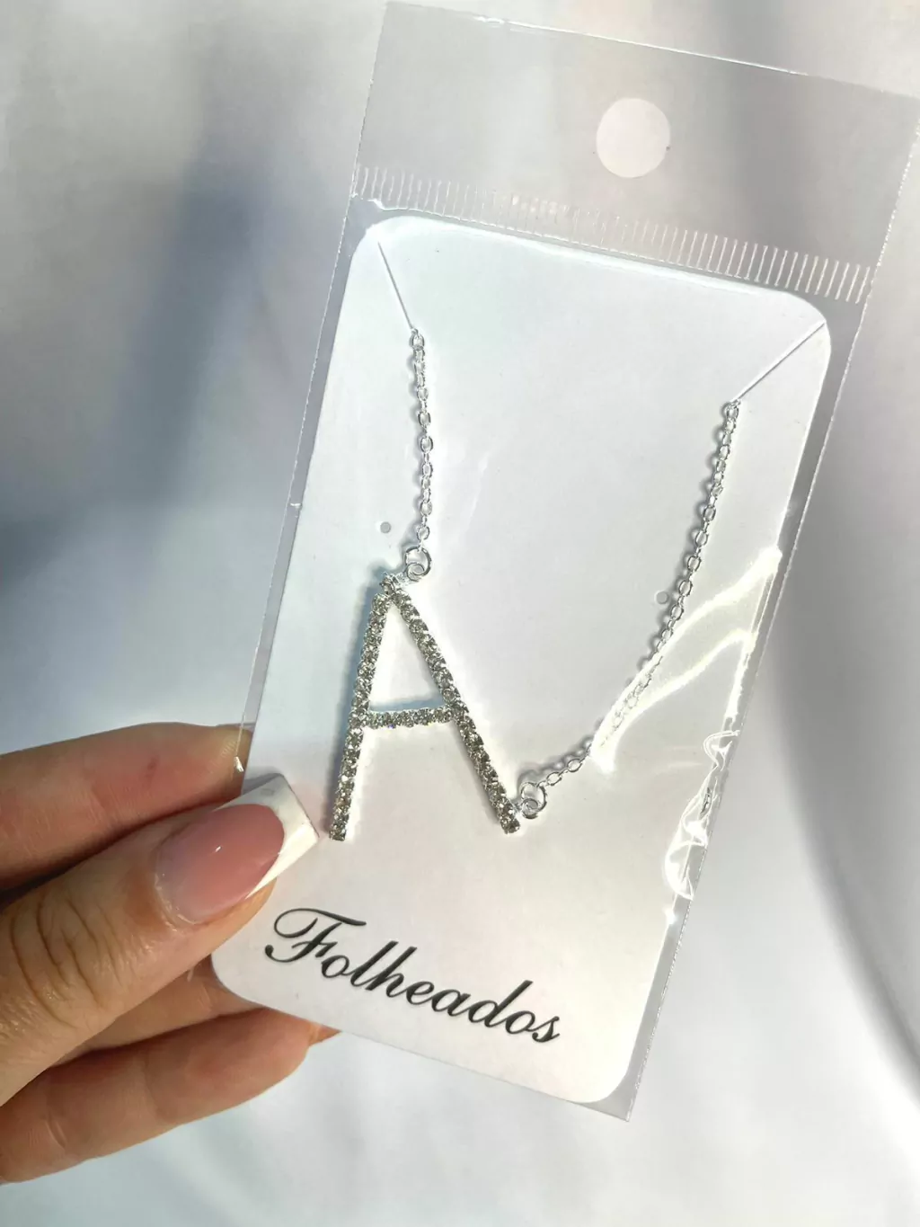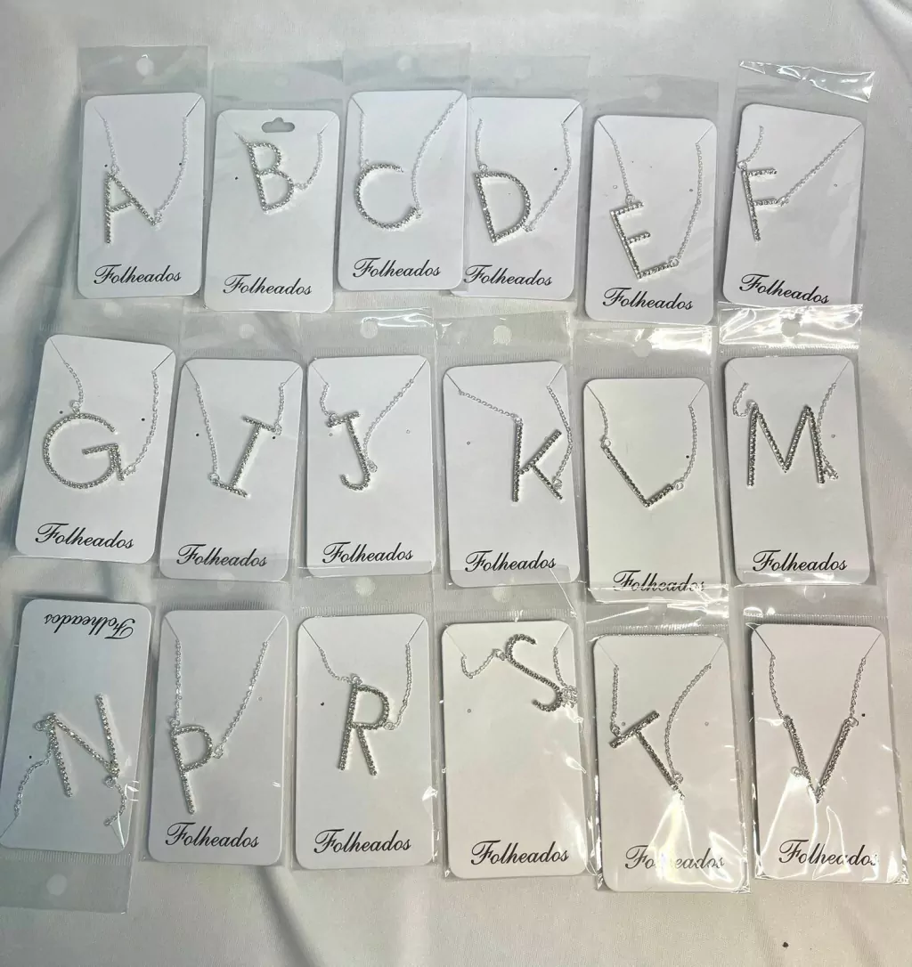 Colar letras strass prata folheado todas as letras do a ao z