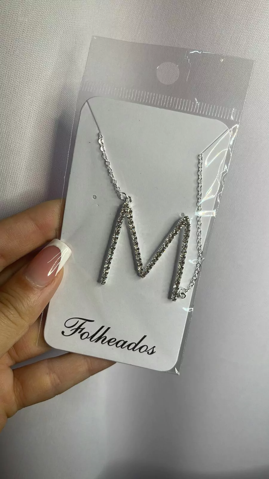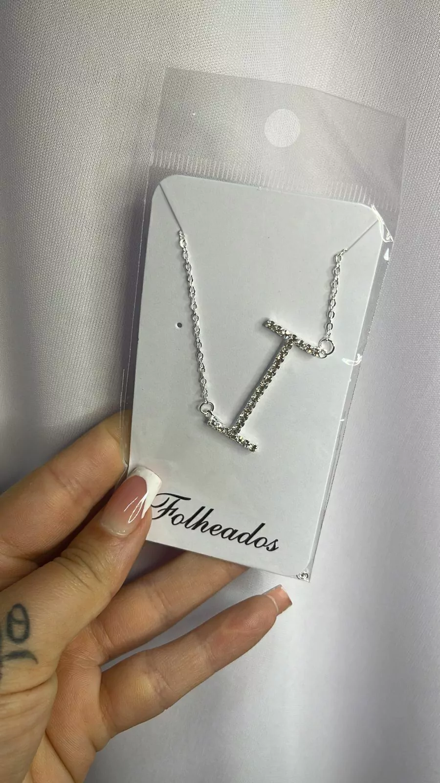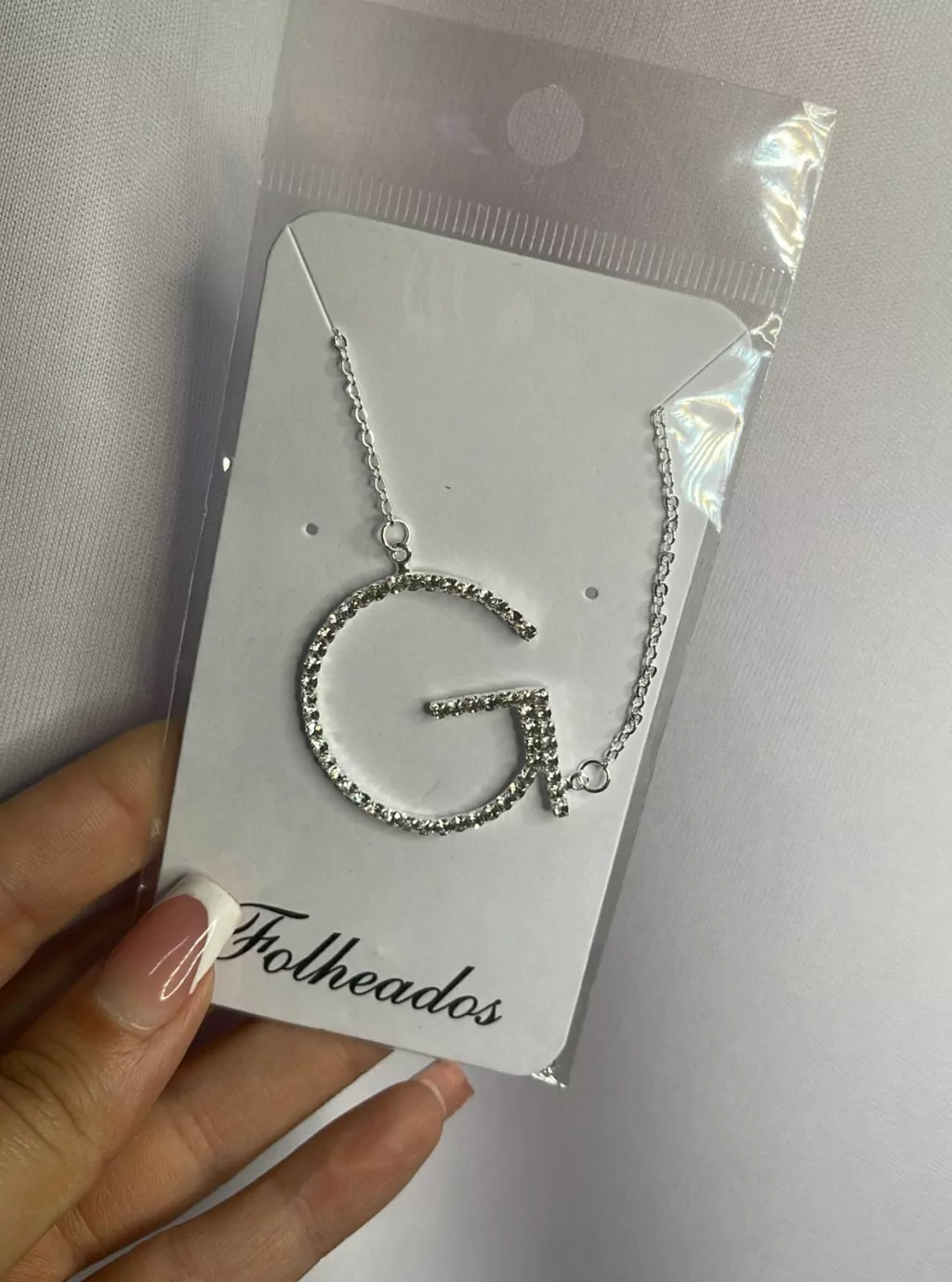 Colar letras strass prata folheado todas as letras do a ao z