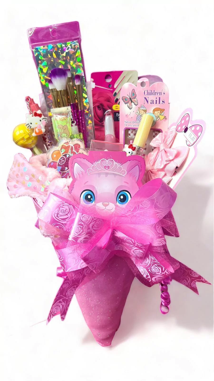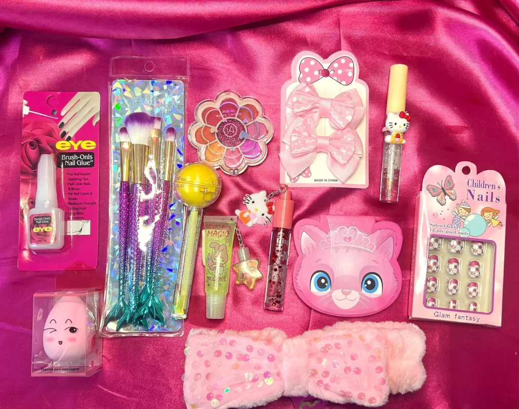 Esse lindo buquê de maquiagem infantil para você presentear sua filha ou netinha agora no dia das crianças contém 12 itens: