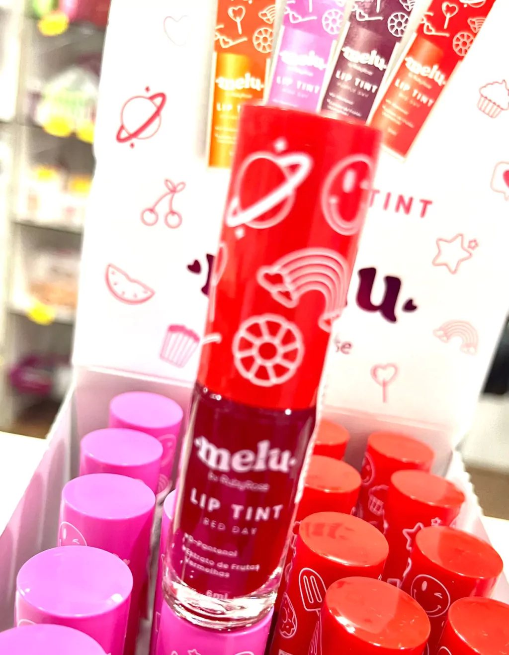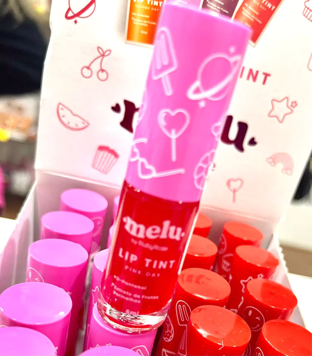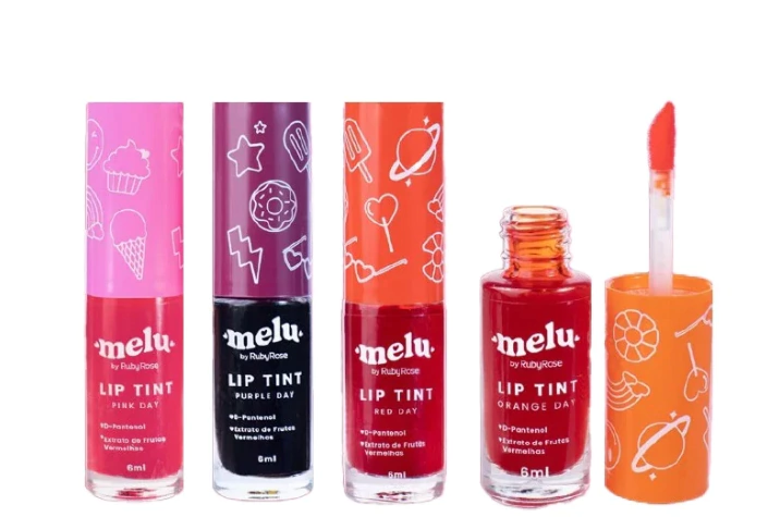 O Lip tint Melu deixa seus lábios corados, porém ele possui uma alta pigmentação onde aplicado com concentração deixa seus lábios vermelhinhos, ele vem disponível em três tonalidades para você diversificar.