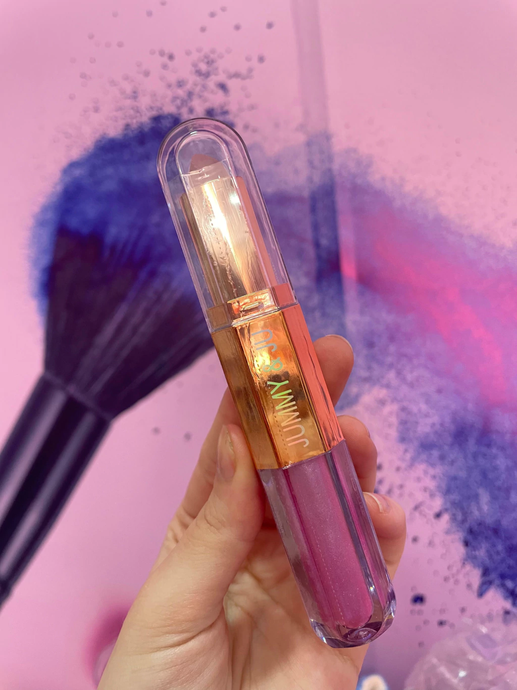 Lipstick e Lip Gloss 2 em 1 JummyEJu Praticidade e estilo em um só produto! 💄✨ De um lado batom com alta pigmentação e do outro gloss com brilho radiante, perfeito para usar separado ou juntos e criar diferentes efeitos nos lábios.