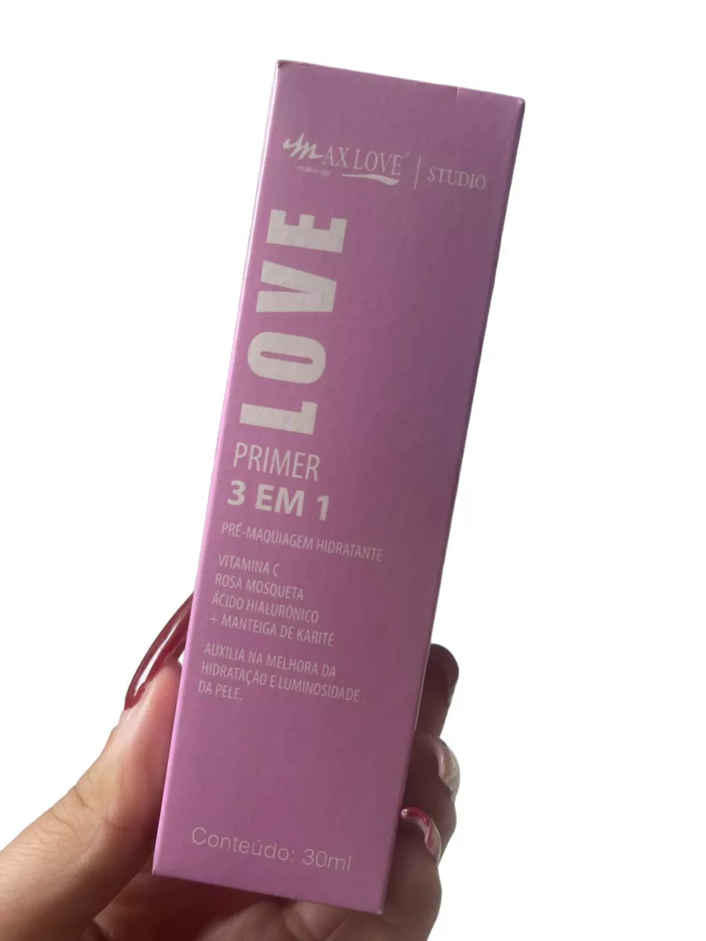 Primer 3 em 1 max love com rosa mosqueta, ácido hialuronico e manteiga de karité