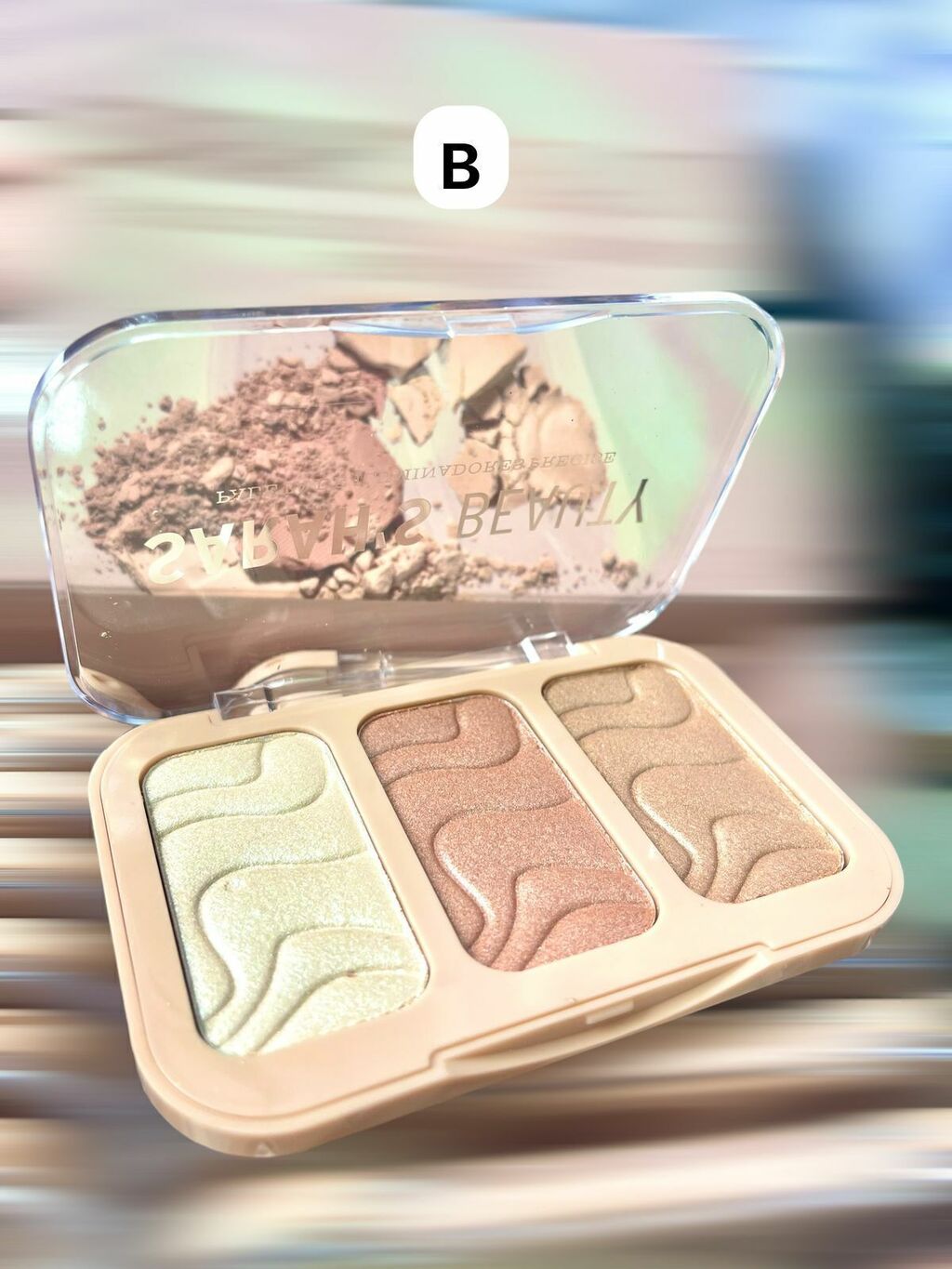 Sarah Beauty Paleta de iluminador Precise 3 cores de iluminadores para você arrasar